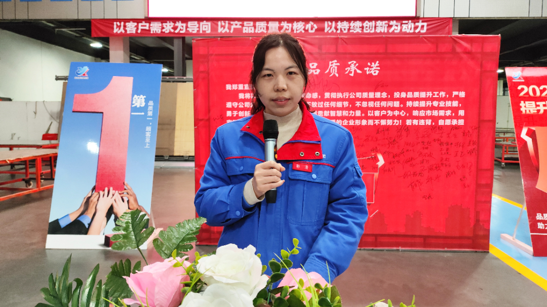 在专题发言环节,来自销售、设计、生产、后勤等关键部门的六名管理干部代表,分别就产品、设计、服务、沟通和工作质量等议题发表了主题发言。