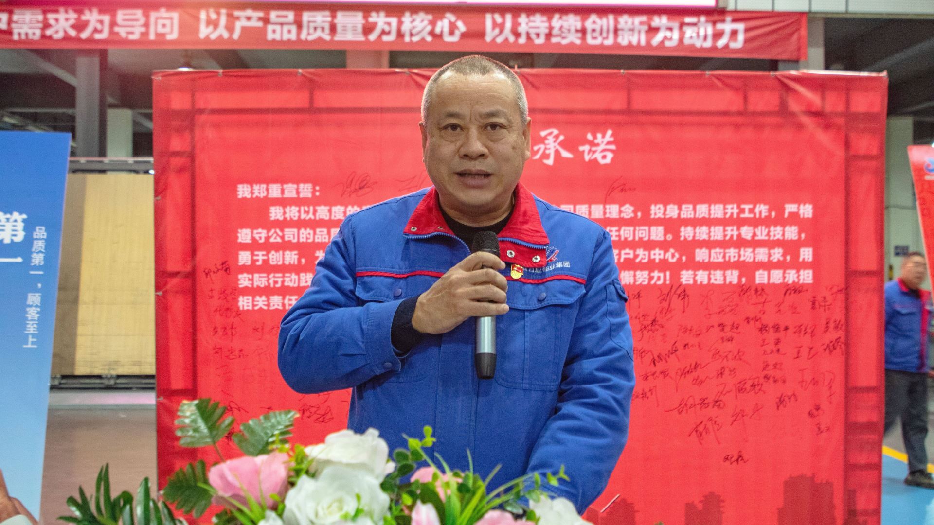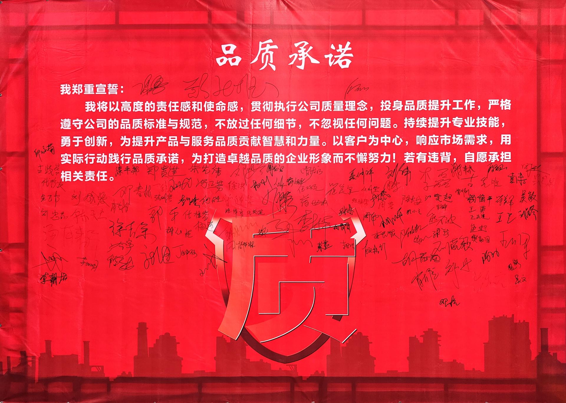 会议伊始,全体员工以笔为誓,以字为证,在品质承诺墙上庄重地签下自己的名字。每一笔每一划都体现了大家对品质提升的坚定决心和无限信心。