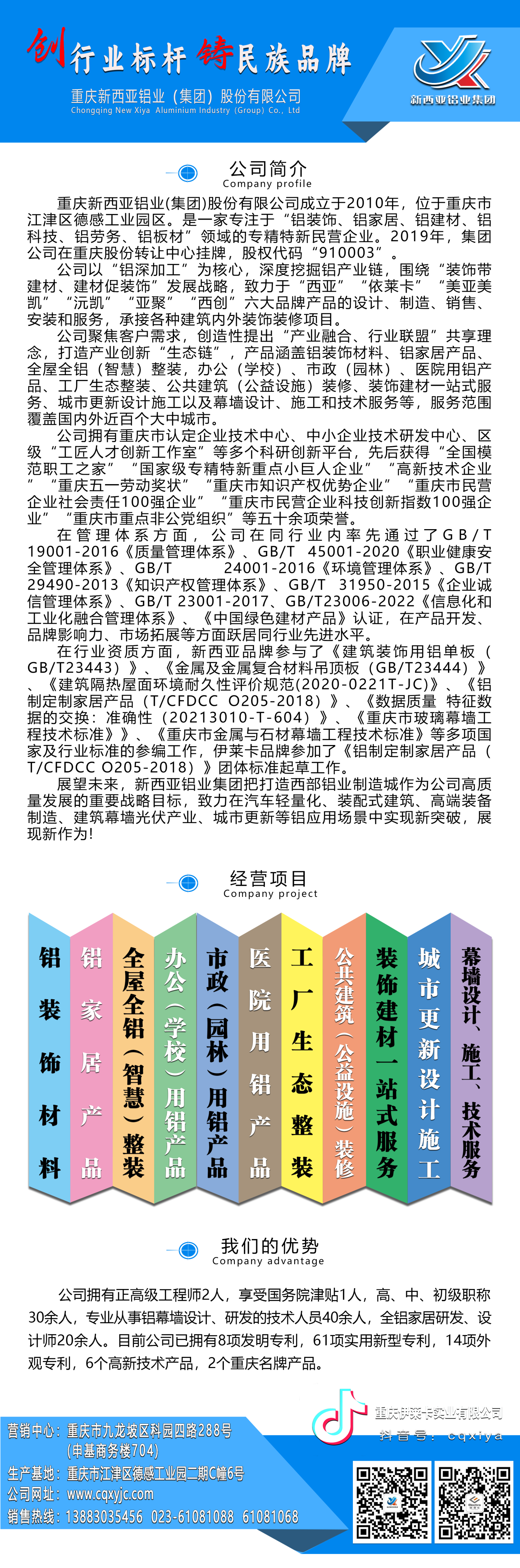 未来,新西亚铝业集团将以此为契机,以再次荣膺“双百”名单为动力,进一步深化清廉建设,致力于打造具有行业示范性和影响力的清廉建设品牌,将清廉建设融入企业发展战略,不断提升企业的核心竞争力和社会责任感。集团将继续强化内部管理,完善廉洁制度,加强监督执纪,确保清廉建设贯穿公司生产经营全过程,并推动清廉元素向行业全链条延伸,构建良好的行业生态。同时,作为江津区德感商会会长单位,新西亚铝业集团将积极发挥示范引领作用,联合广大会员单位,共同探索清廉民企、清廉商会建设的新路径、新模式,例如建立清廉建设联盟、开展清廉建设经验分享会等,凝聚起推动清廉重庆建设的强大合力,为营造风清气正的经济社会发展环境贡献新西亚力量,助力构建亲清政商关系、推动经济社会高质量发展!