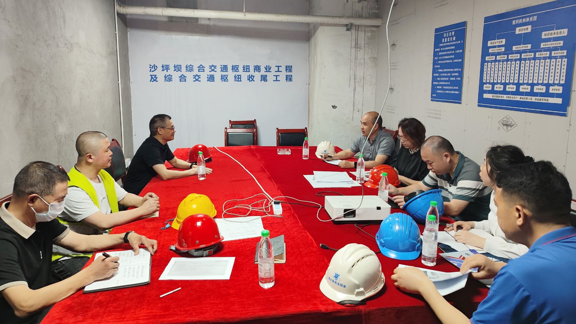 现场考察结束后,新西亚团队分别在项目部会议室召开专项推进会。会上,销售、技术、质量安全及客户服务负责人分别就铝单板材料的定制化工艺、生产周期、质量管控、产品运输及k8体育的售后服务等客户关切问题逐一回应,并针对项目情况提出了具体的ag凯发的解决方案。