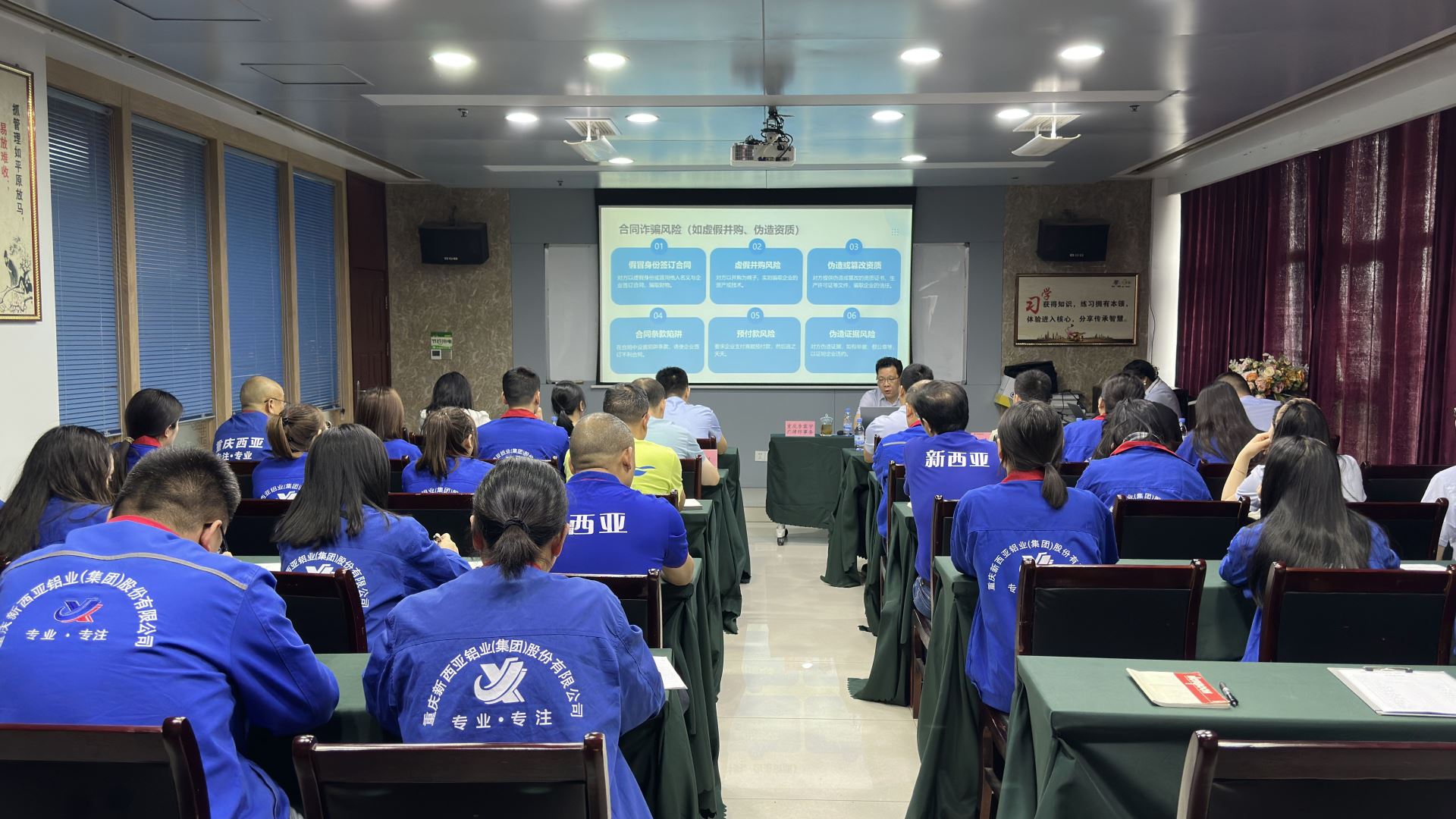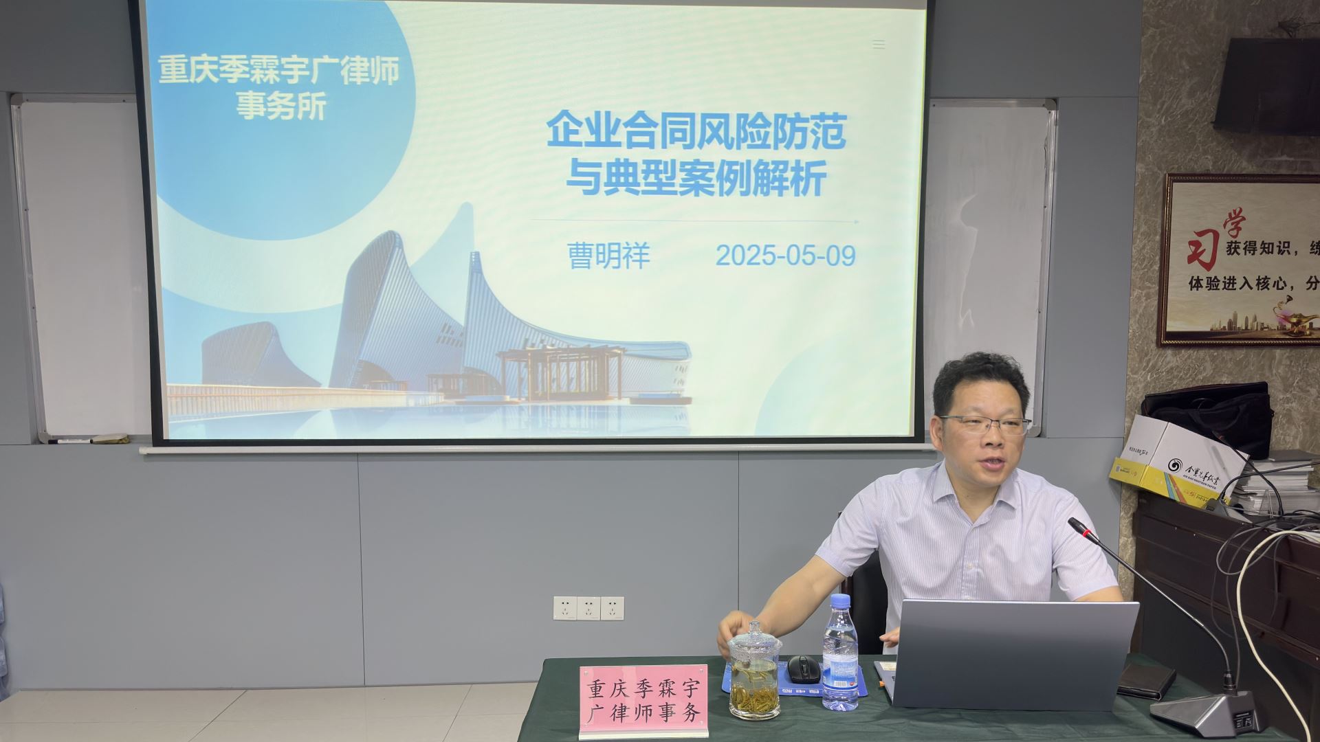 活动当日,重庆季霖宇广律师事务所主任曹明祥以 “以法助企・护航发展”为主题,结合新西亚铝业实际情况,开展了《企业合同风险防范与典型案例解析》专题法治宣讲。宣讲活动由公司总经理助理周雄主持,公司经营负责(管理)负责人以及员工代表共计 40 余人参加,涵盖生产、销售、人力等关键部门负责人及一线员工代表。曹主任聚焦制造业特点,剖析典型合同纠纷及劳动用工案例,着重讲解风险识别、防范策略及民法典关键条款,助力企业提升依法维权与风险防控能力。