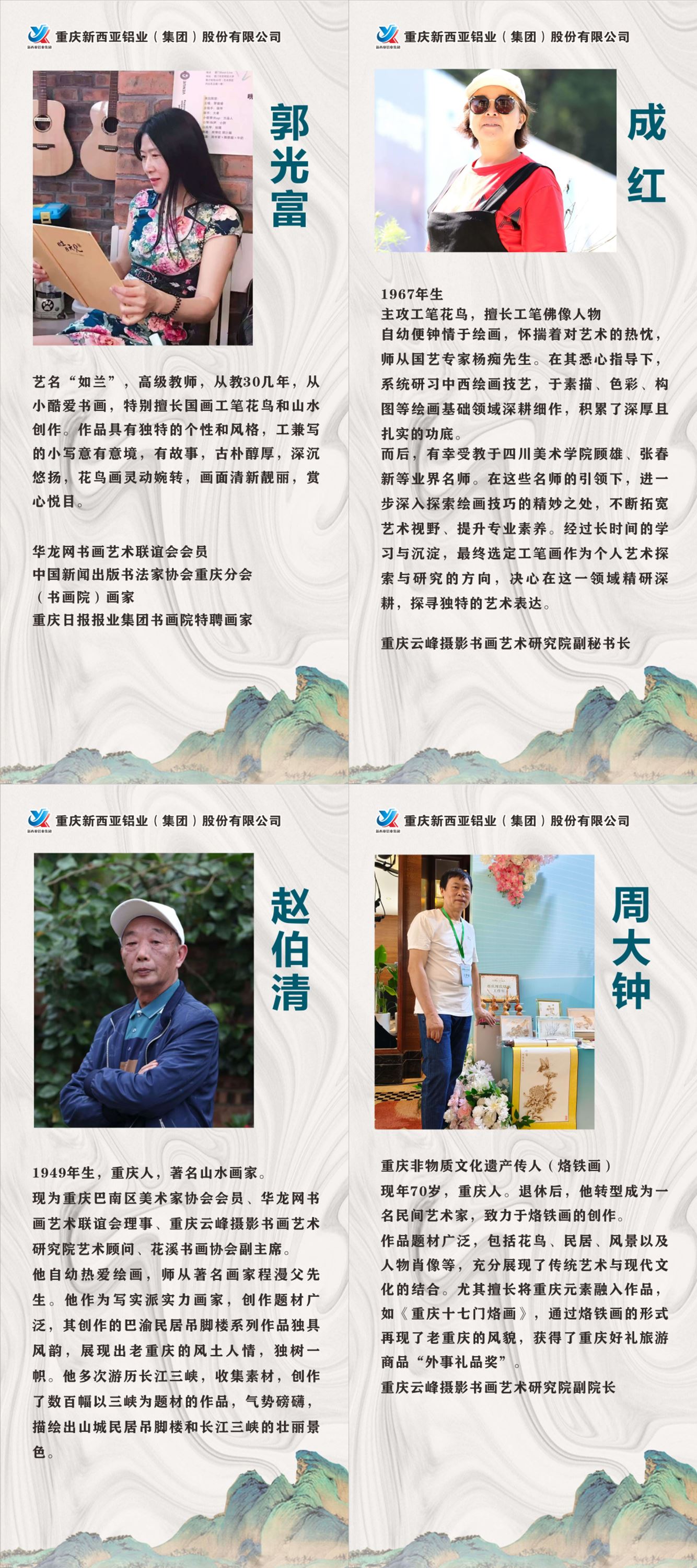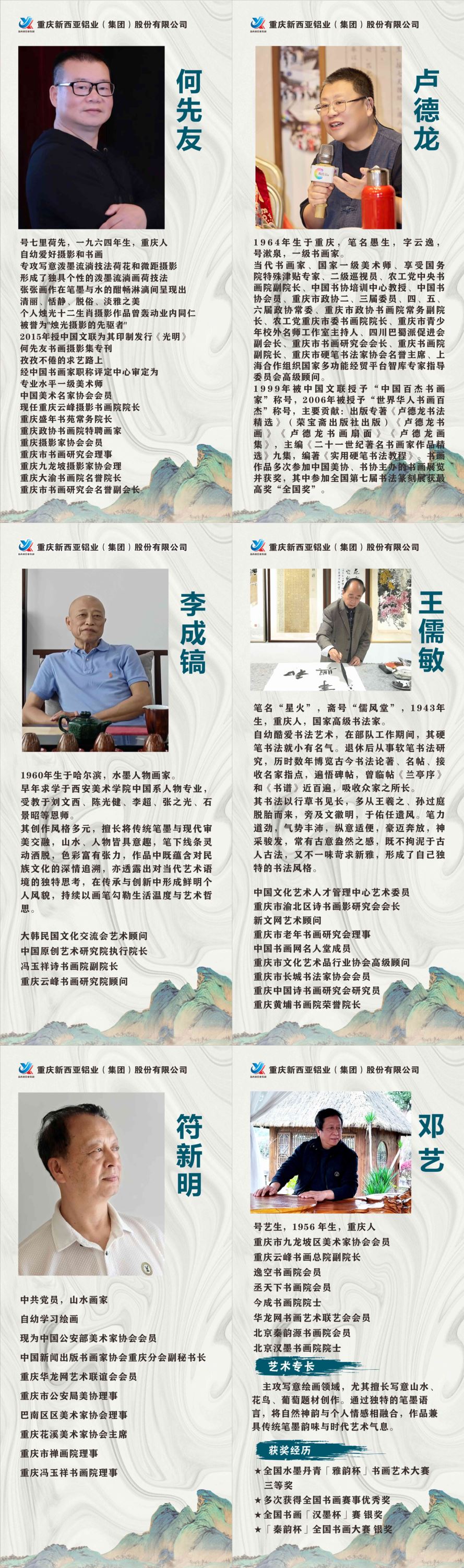 7月5日,一场墨香氤氲的文化盛宴在重庆新西亚铝业集团成功举办。“翰墨飘香·文化赋能”书画家联谊活动由新西亚铝业主办,江津区德感商会协办,特邀重庆云峰摄影书画研究院院长何先友率领十余位书画名家走进新西亚,与德感商会企业家代表齐聚一堂,共话艺企情缘,共谱文化新篇。