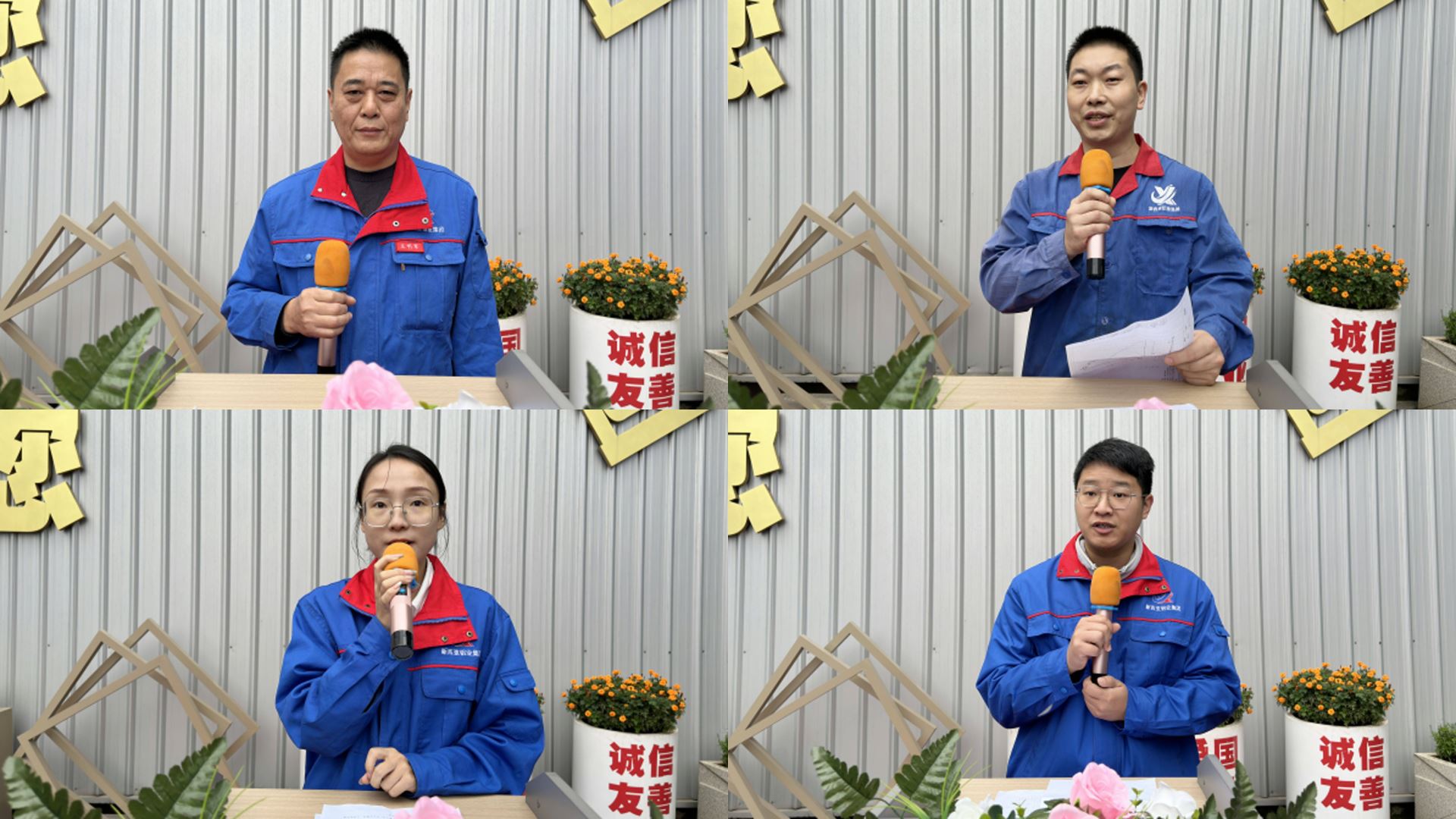 优秀员工代表王明军、张红与新入职员工代表李婉莹、张毅先后发言,分享成长感悟与奋斗决心。