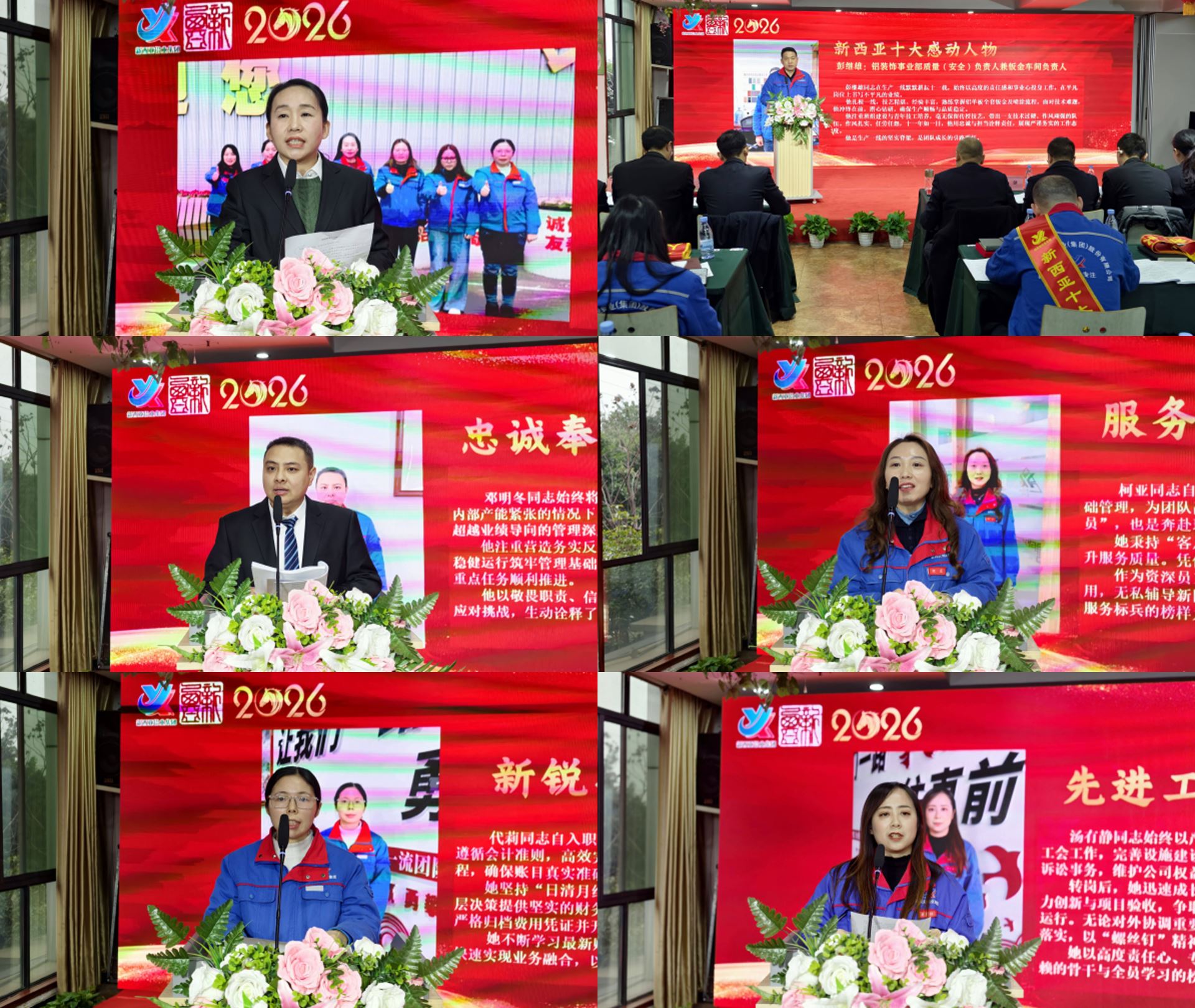 随后,财务管理部宋玉芳、铝装饰生产运营部彭继雄、铝装饰事业部邓明冬等六位获奖代表先后上台发言。他们结合自身岗位,分享了攻坚克难的心路历程与忠诚奉献的感人故事,生动诠释了新西亚人“坚韧、忠勇、激情、团队、争先、奋斗”的精神内核,引发全场强烈共鸣。