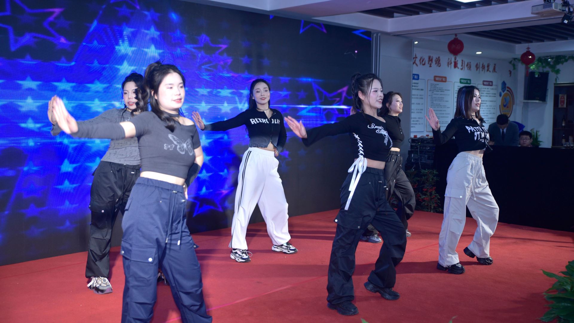 市场营销部、技术部和研发部的同事们带来了激情欢快的开场舞《apt》。她们的激情表演瞬间点燃了现场气氛,为年会注入了活力。