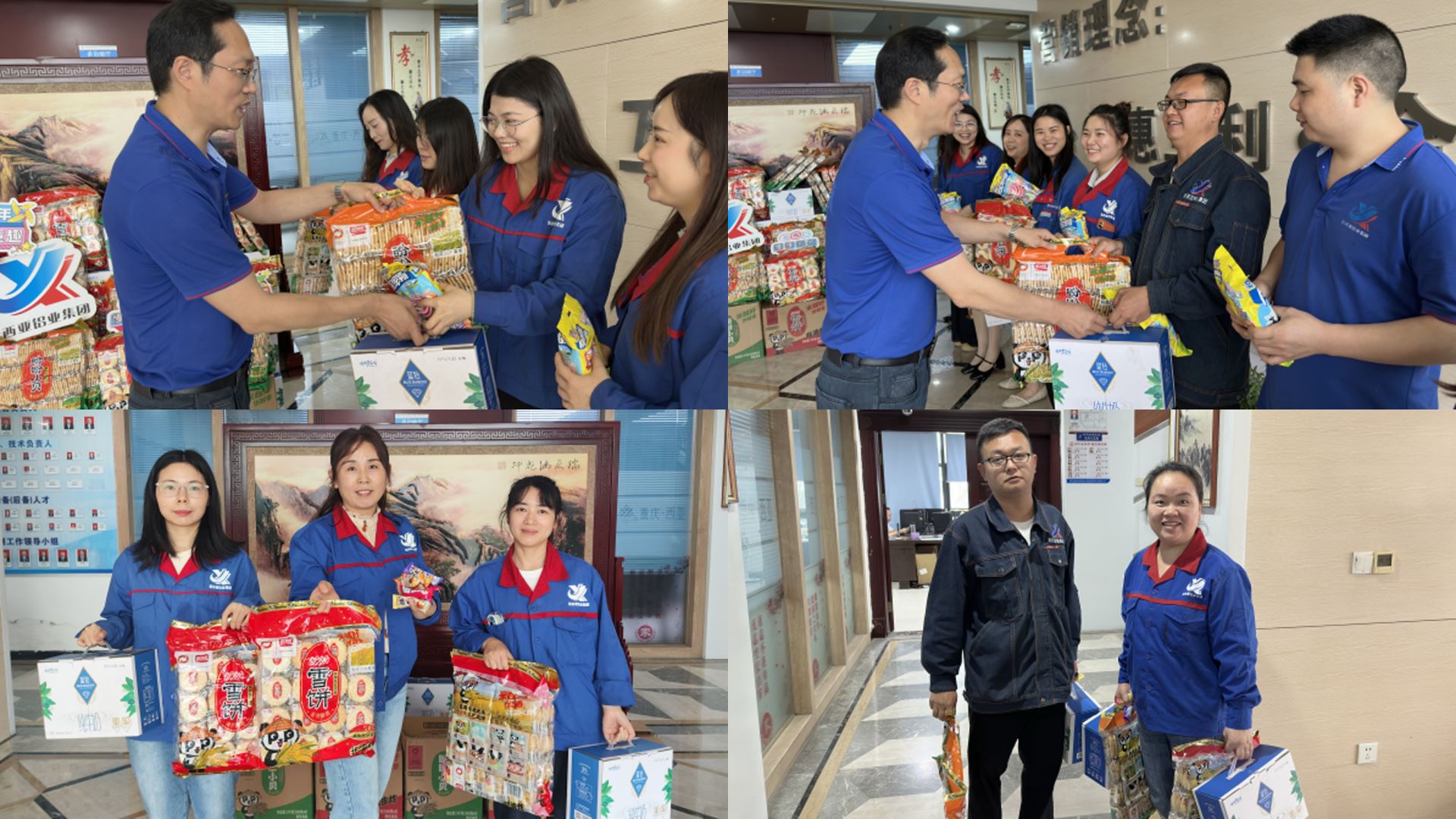 在节日礼物发放现场,工会主席傅明华把装满节日祝福的零食礼包逐一交到家长代表手中,现场洋溢着欢乐祥和的气氛。家长们接过沉甸甸的礼物,脸上洋溢着幸福的笑容,纷纷对公司的关怀表示感谢。一位员工激动地表示:“这份礼物不仅代表公司对员工的关怀,更是对下一代成长的重视,让我们感受到公司大家庭的温暖,今后会以更饱满的热情投入到工作中。”