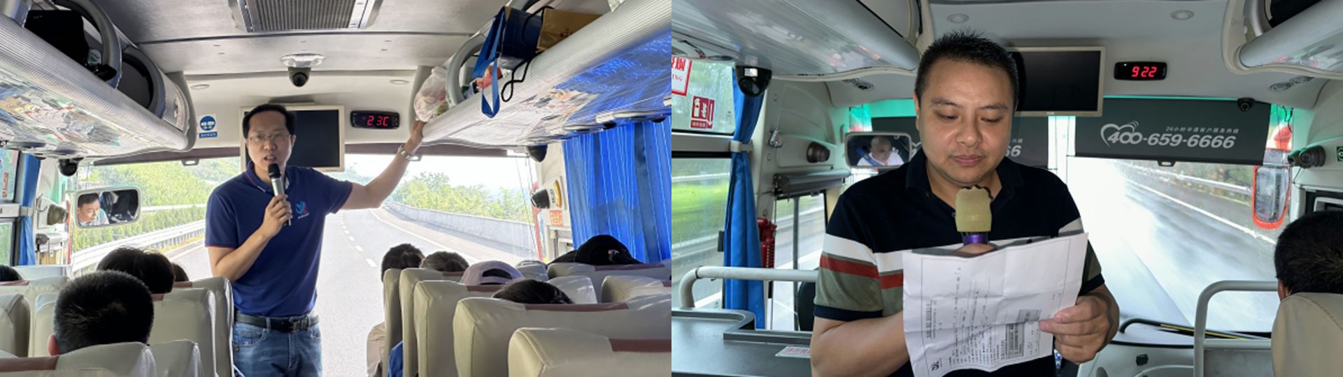 初夏时节,阳光正好,微风拂面。出发前,工会主席傅明华与铝装饰事业部总经理邓明冬分别作为第一批和第二批的领队,发表了热情洋溢的讲话。他们代表公司,向全体老员工们表达了最诚挚的谢意,感谢大家多年来与新西亚风雨同舟,用忠诚与担当书写了奋斗篇章。同时,鼓励大家在这次难得的放松时刻,尽情领略北碚的秀美风光,舒缓身心,并叮嘱大家将这份来自公司的关怀铭记于心,也注意旅途安全。