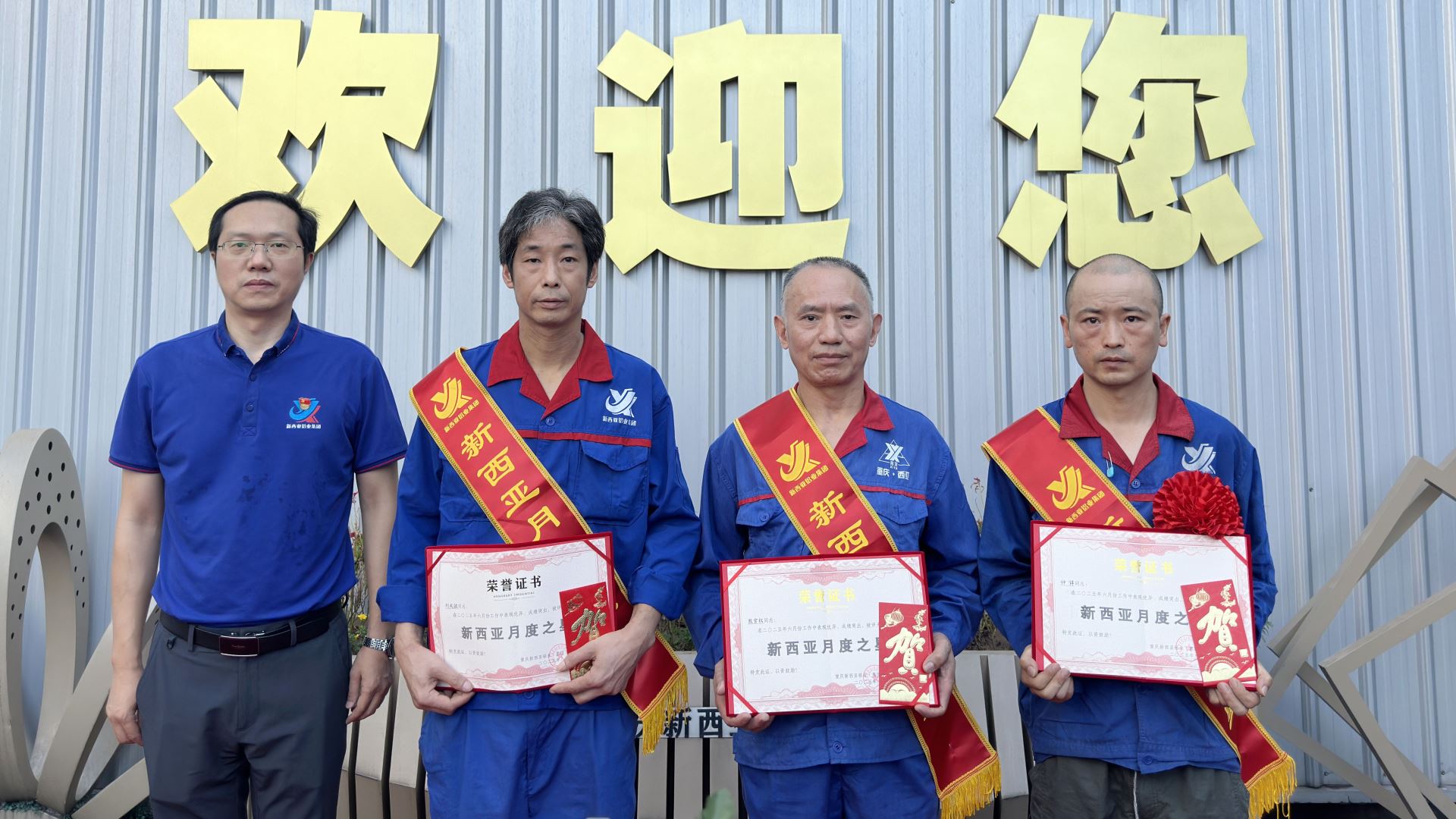 榜样引领,争当先锋。公司对喷涂车间挂件班班长刘成波、折弯班熊官权、焊接班钟洋、工艺技术员叶子俊四名“新西亚之星”进行了隆重表彰。他们是平凡岗位上的不凡者,用实际行动诠释了责任与担当,为全体员工树立了鲜活而有力的榜样。