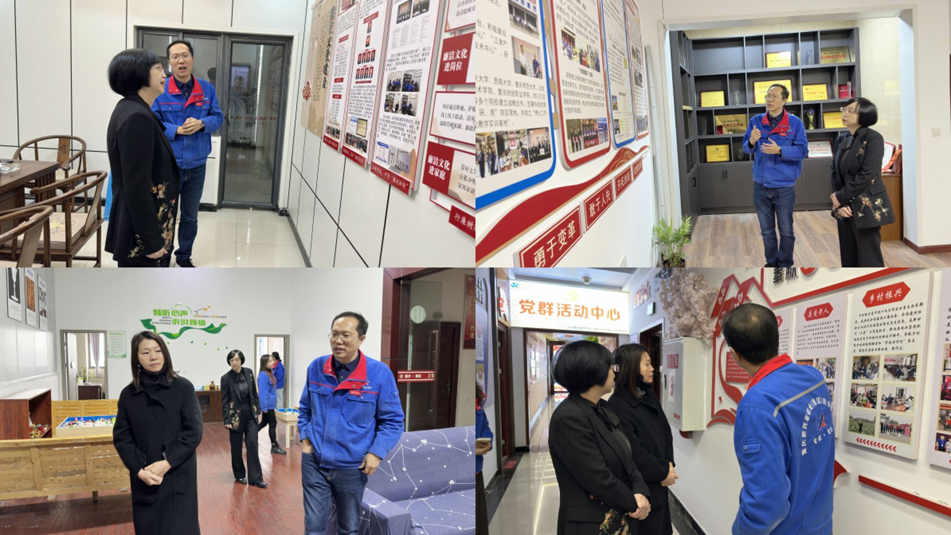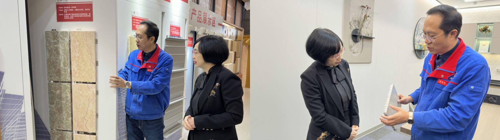在集团公司工会主席傅明华的陪同下,邹芝兰副主席一行参观了公司铝装饰、铝家居产品展厅,以及党群活动室、职工书屋、职工活动中心、工匠工作室、心理咨询室等功能区域和工会阵地运行情况。