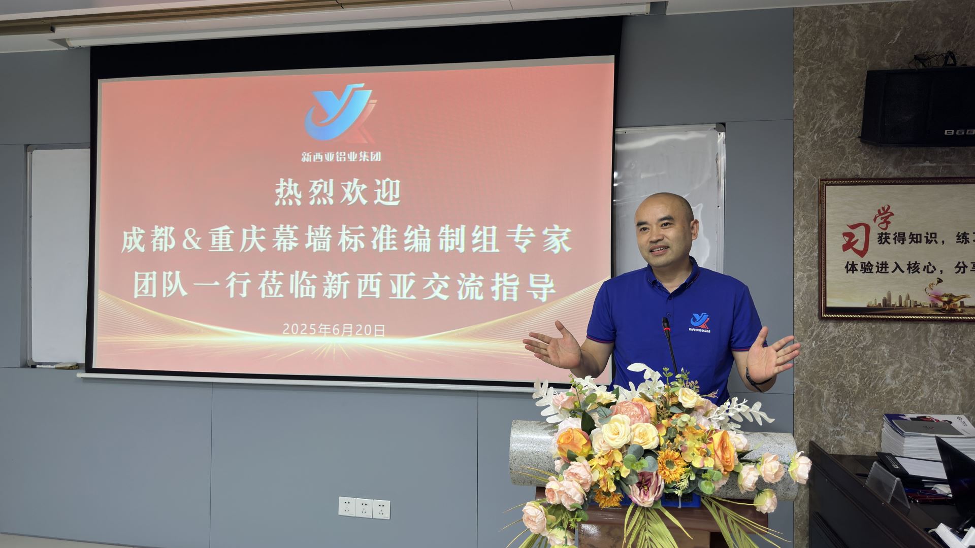 集团总经理刘斌在致辞中首先对编制组各位专家的到来表示热烈欢迎和衷心感谢。他表示,新西亚铝业始终秉持“以铝深加工为核心,装饰带建材、建材促装饰”的同心多元化战略,深耕“铝装饰、铝家居、铝建材、铝科技、铝劳务、铝板材”领域。此次有幸成为重庆市《既有建筑幕墙门窗维护与改造工程技术标准》的参编单位,并荣幸承办本次交流活动,这不仅是对新西亚过往技术积累与行业贡献的肯定,更赋予了新西亚沉甸甸的责任。